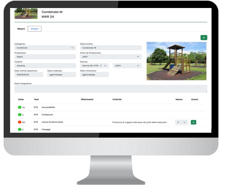 L’obiettivo è facilitare la condivisione in tempo reale dei risultati delle ispezioni e delle manutenzioni tra tutte le figure coinvolte: l’area tecnica, il gestore del parco e i manutentori, ciascuno nell’ambito delle proprie responsabilità.