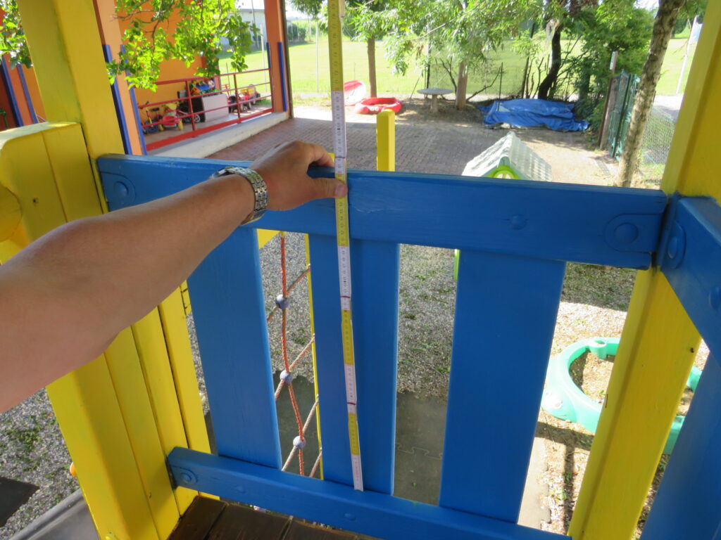 Ispezione dettagliata delle attrezzature gioco e fitness, ( strutturale, intrappolamenti, dimensionale, altezze e spazi di caduta) come richiesto dalle normative EN1176 – EN16630